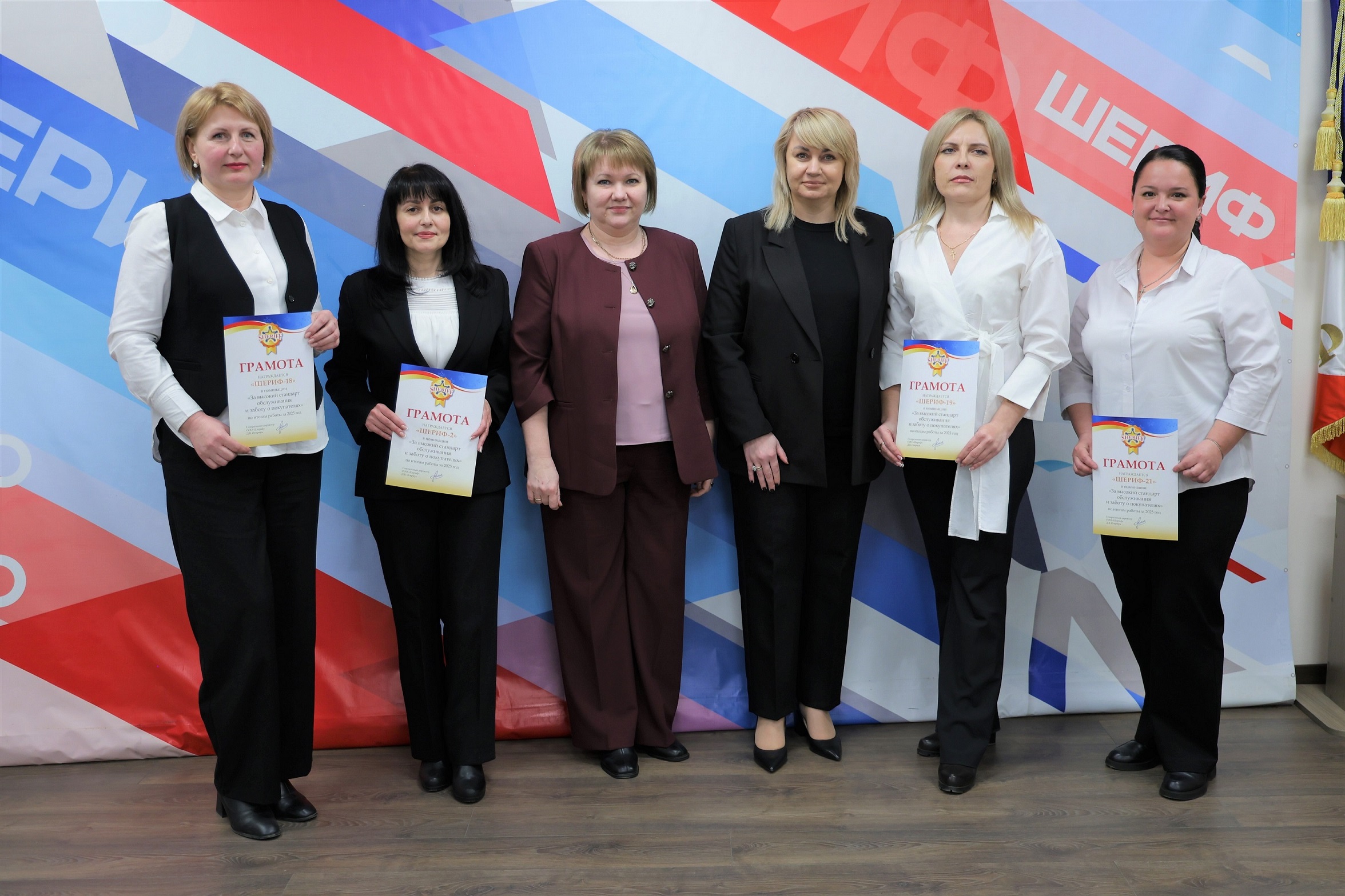 Лучшими супермаркетами по итогам работы за 2025 год, которым была вручена награда в виде Звезды «Лучший супермаркет», стали следующие подразделения торговой сети: Магазин оптово-розничной торговли № 28 г. Рыбница, Супермаркет «Шериф-20» г.Тирасполь, Магазин оптово-розничной торговли № 17 г. Бендеры, Маркет «Шериф-25» с.Ближний Хутор.